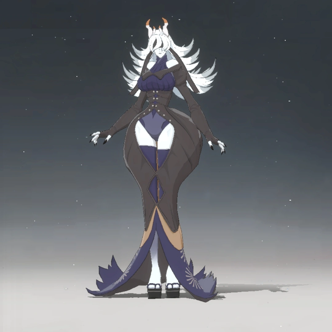 Arachne aparece como una gran humanoide con piel y cabello de color blanco mármol. Tiene cuatro cuernos marrones que se extienden desde la parte superior de su cabeza, con forma de mandíbulas de araña. Lleva un vestido largo negro y azul y grandes sandalias okobo negras. Lleva una venda oscura que le oculta los ojos. La parte trasera de su vestido se extiende como el abdomen de una araña, pero no está claro si esto forma parte de su anatomía o simplemente de la forma de su ropa.