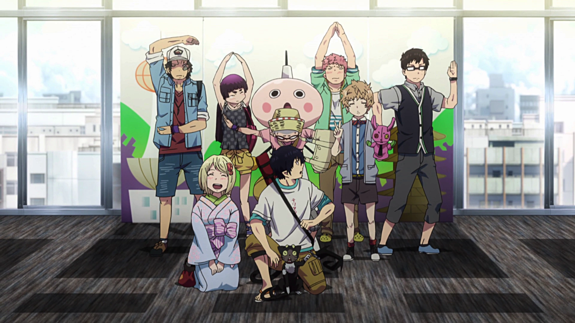 Los Exwire se juntan para pasar el día libre y hacer turismo por Kioto, todos sugieren lugares interesantes para visitar hasta que Rin pide ir a la Torre de Kioto, respondiendo Konekomaru que existen lugares más encantadores y divertidos, Rin suplica porque siempre quiso ir y Ryuji recuerda que él es el hijo de Satán, por lo que deben obedecer si no quieren morir. Luego de pasear por distintos lugares, finalmente llegan hasta la Torre de Kioto, para alegría de Rin. Él pide permiso a sus amigos para tomarse una foto juntos como recuerdo, y sus compañeros bromean nuevamente sobre obedecer las peticiones del hijo de Satán. Rin pide que dejen esa broma y Ryuji se acerca a él para recordarle que son amigos y no necesita siempre pedir permiso. Tras esto, sus amigos se juntan y sorprenden a Rin al posar con sus cuerpos para formar la palabra "SATAN".[76]