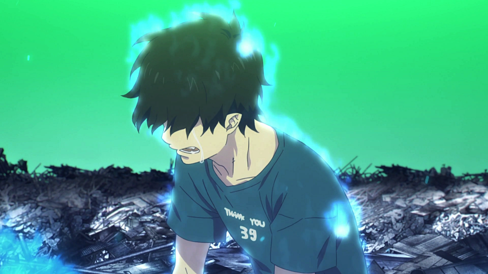 Luego, Tatsuma y los demás llegan al Sector Oculto, pero ya es demasiado tarde porque Mamushi y Todo habían desaparecido. Ryuji aprovecha el momento para confrontar a su padre y le dice que todo lo que acaba de pasar es su absoluta culpa.[25] Mientras tanto, Mamushi se encuentra exhausta porque no soporta el poder del Ojo Derecho y Todo le pide descansar, a lo que Mamushi se niega. Ryuji todavía espera una respuesta de su padre, quien solo lo evade y dice que es un secreto que no puede contárselo ni a su propio hijo. Tatsuma intenta marcharse en busca de Mamushi y Ryuji expresa todo su odio hacia él. Rin, quien había llegado con Shura, no puede permitir que Ryuji le diga eso a su padre, y lo golpea en el rostro pidiendo que se disculpe con Tatsuma. Éste le pide que no se peleen y se despide, entonces Ryuji le dice que no vuelva nunca más. Rin recuerda la trágica muerte de su padre y la discusión que tuvieron antes de morir, haciéndolo enojar y despertando sus Llamas Azules frente a todos los de Myōō Dharani.[26]