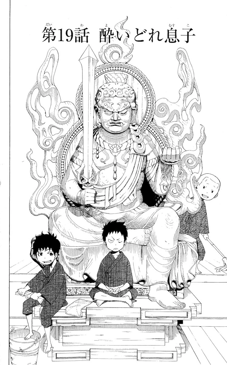 En otro lugar Uwabami habla con Ryūji comentándole sus sospechas sobre la gente de Myoda, Ryūji recuerda cuando era niño y los seguidores de Myoda deseaban retirarse, Ryūji intenta detenerlos pero ellos dicen que se van porque Tatsuma no trata con respeto a su Buda. Años después Ryūji les informa a sus padres que se inscribirá en la academia para ser un exorcista aunque su padre claramente se niega aceptarlo Ryūji de todas formas se va.
