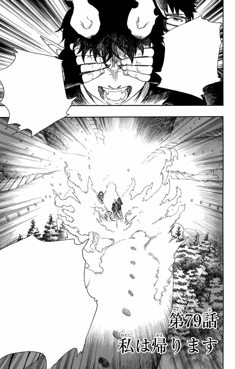 Mientras Yukio cubre los ojos de su hermano para evitar la hipnosis, Rin lanza su Satan Bomb Campfire, logrando quemar todo el cuerpo del Hydra y hacer explotar sus numerosas cabezas. Hachirotaro sufre las pérdidas y suelta a Shura en el proceso. Ella siente que las llamas de Rin son cálidas, además, controla qué quemar y qué no, felicitándolo por su hazaña. Shura recuerda los entrenamientos que tuvo con Rin en el pasado, y cómo ella lo supervisó y eligió los nombres de sus técnicas, aún cuando a Rin le parecían ridículos. Aunque Shura le hizo entender la importancia de usar nombres simples para que sean fáciles de recordar y usarlos rápidamente durante una batalla.