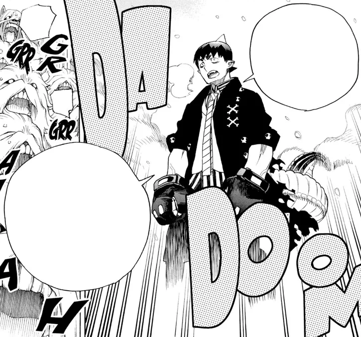 Al mismo tiempo, la Tropa Separada Anti-Satán busca la posición perfecta para ubicarse y disparar el Devil ☆ Vanisher.[9] Producto del poder de Heilong, el número de demonios enemigos disminuye considerablemente, quedando los Reyes totalmente desprotegidos. De este modo, los exorcistas intentan atacar a Egyn, aunque éste se refugia en una burbuja de agua asegurando no querer pelear. Iblis se enfada al ver que están atacando a su adorable hermano y contraataca creando erupciones volcánicas en el suelo. Lucy esquiva el ataque del Rey de Fuego y lanza sus Garras Negras, las cuales impactan contra Iblis, Egyn y Astaroth, recibiendo este último daño directo. Lucy cuenta que sus garras son armas creadas a partir de la cristalización de Armumahel y tienen la capacidad de hacer dormir a quien apuñale. A modo de burla, Lucy se pregunta si los Reyes Demonio pueden soñar, provocando el enojo de Iblis.[10]
