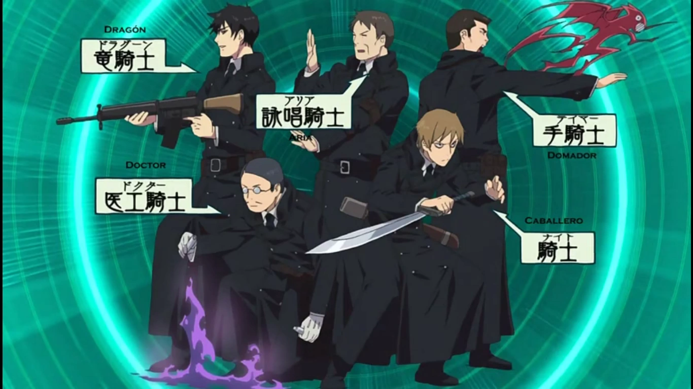 Knight「騎士,Naito?」 los Knight son exorcistas que luchan cuerpo a cuerpo, usando espadas,[1] cuchillas, bastones[2] u otro tipo de arma a corta distancia, incluyendo las Maken,[3] que son espadas demoníacas bastante raras con habilidades únicas.[4]