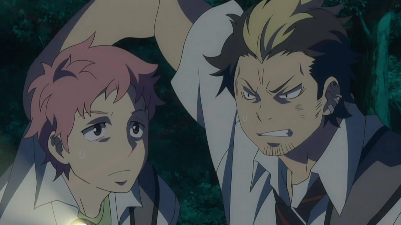 Una vez que el primer trimestre termina, los Exwire comienzan una nueva etapa de entrenamiento en un campamento, por lo que se dirigen al bosque junto a Yukio Okumura y Shura Kirigakure. Yukio menciona que durante el día el bosque es tranquilo, pero que de noche se vuelve el hábitat de demonios de nivel inferior, así que apresura a sus estudiantes para acomodar las carpas, hacer la fogata y realizar encantamientos de protección contra demonios. Mientras lo hacen, la confianza entre los Exwire se afianza mucho. Al llegar la noche, Rin ayuda a preparar la cena y la disfruta a gusto en compañía de Renzo y sus otros compañeros; aunque a Renzo se lo ve intranquilo debido a que le tiene terror a los insectos, sobre todo en el bosque.