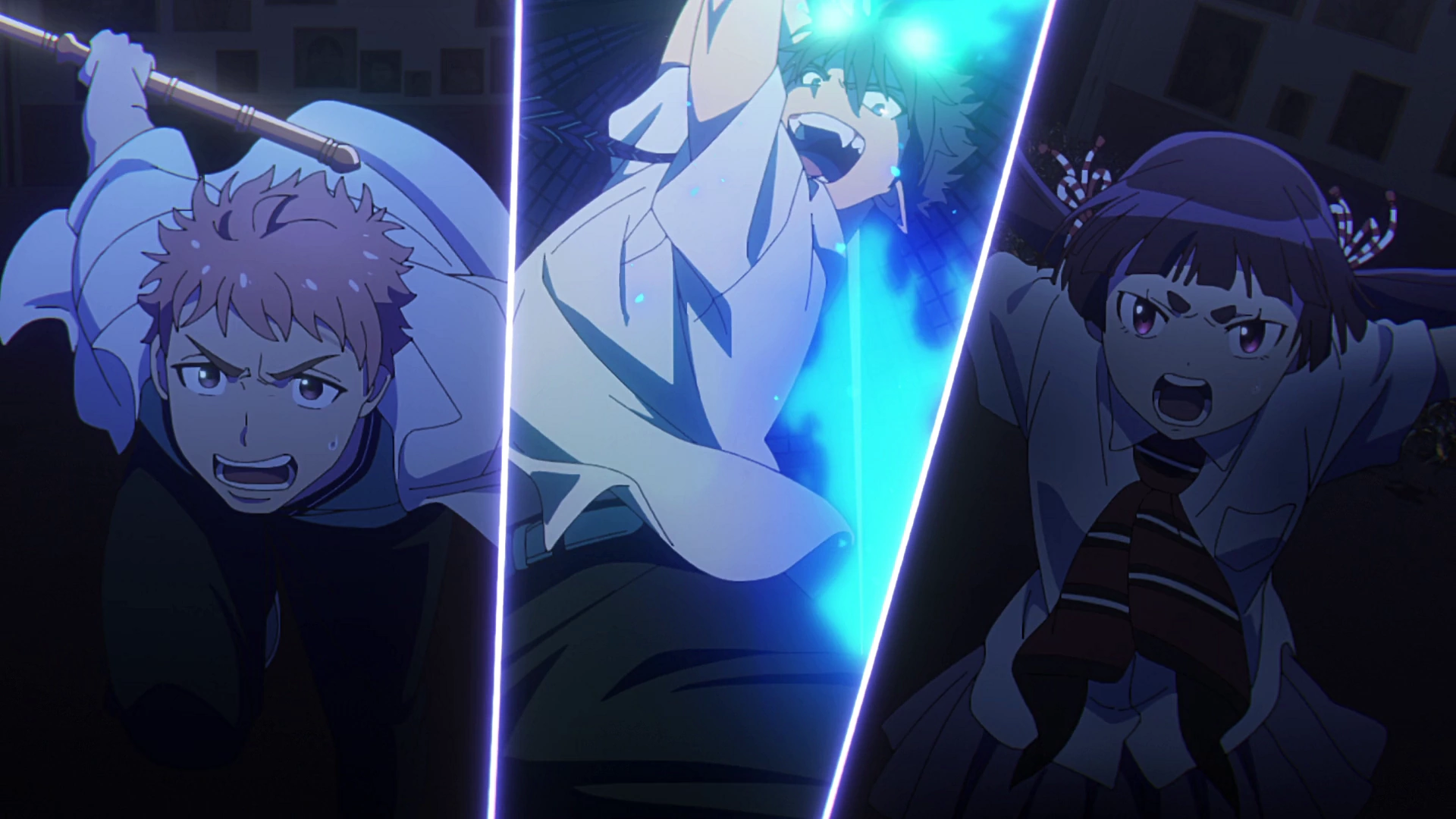 Debido a las constantes peleas entre los alumnos, el profesorOkumura planea un castigo colectivo y les obliga a cargar el peso de un Bariyon sobre sus piernas; la idea del profesor es que el grupo reflexione sobre sus constantes peleas, puesto que los exorcistas no pueden luchar solos y siempre van a depender unos de otros. Yukio se marcha, dice que por tres horas, dejando a los estudiantes para que hablen entre ellos y arreglen sus asuntos. Pero la idea de Yukio no parece funcionar; hasta que de pronto, se va la luz y quedan a oscuras. Renzo se dispone ir a ver afuera y averiguar ocurrió un apagón general o solo era en el edificio, pero en la puerta se encuentra con el Ghoul de la noche anterior, el cual ataca a los estudiantes, sorprendidos porque se suponía que el edificio estaba protegido. El demonio invade a los estudiantes con su Miasma y todos comienzan a padecer los efectos secundarios de éste. Shiemi está segura de querer proteger a todos, y pide ayuda a Nii para crear una barrera de raíces que consiguen retener al demonio.